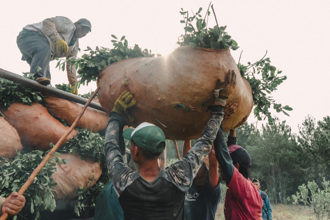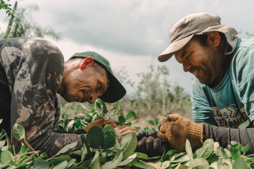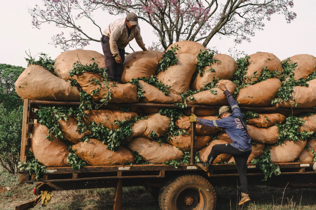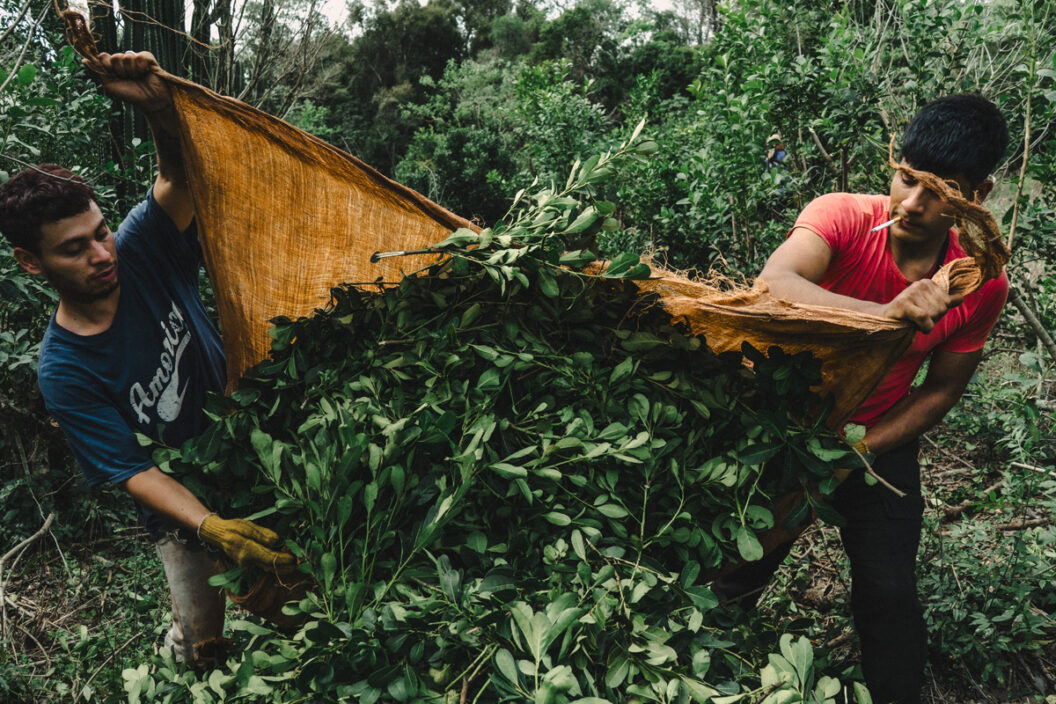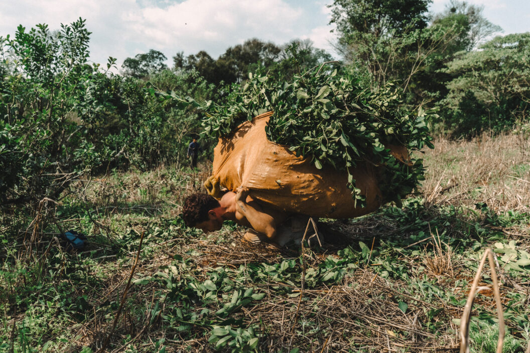 Pero también es un retrato del saber y la dignidad con que se cosecha la yerba: el corte preciso de cada brote para que la planta vuelva a crecer, el trabajo en dupla para resistir el peso, la solidaridad en medio del monte.