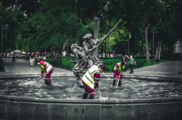 Fotografías que documenten la situación laboral y social de los migrantes latinoamericanos.