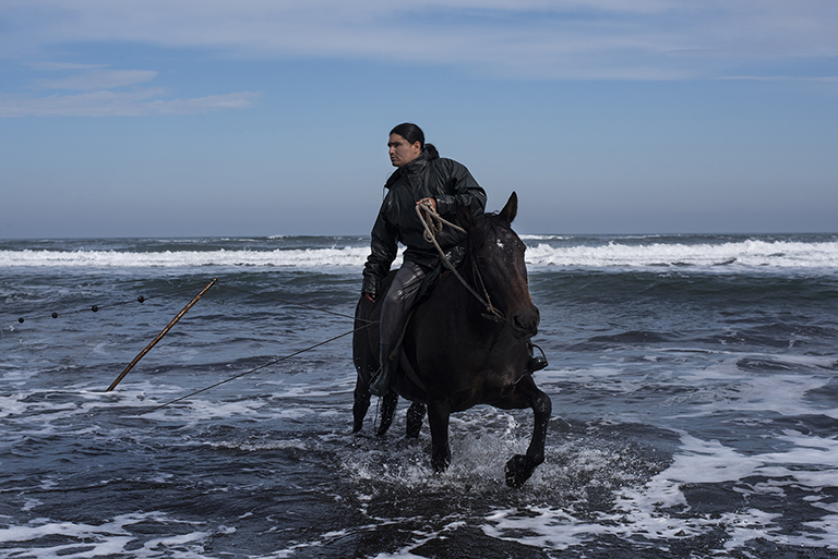En la pequeña y remota localidad costera de Antiquina, al sur de Chile, sobrevive una práctica ancestral y casi desconocida: la pesca a caballo. A diferencia de las formas convencionales de pesca, este oficio singular se lleva a cabo montando caballos que se adentran en las aguas poco profundas del mar, especialmente durante la marea baja. El pescador guía a su caballo con destreza y confianza, mientras arrastra redes o recoge mariscos como piure, loco o luga, combinando el conocimiento del mar con la habilidad ecuestre.
