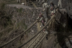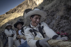 El Q’eswachaka, “puente trenzado”, es el último de los puentes incas, tejido con fibra de q’oya a 3,700 m en Cusco. Cada año, las comunidades de Chaupibanda, Choccayhua, Ccollana Quehue y Huinchiri se unen en la Minka para renovarlo, entrelazando tradición, trabajo y solidaridad. Este ritual colectivo mantiene viva una cosmovisión ancestral, donde la fuerza del esfuerzo compartido sostiene el último puente inca en pie.