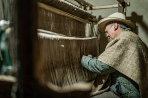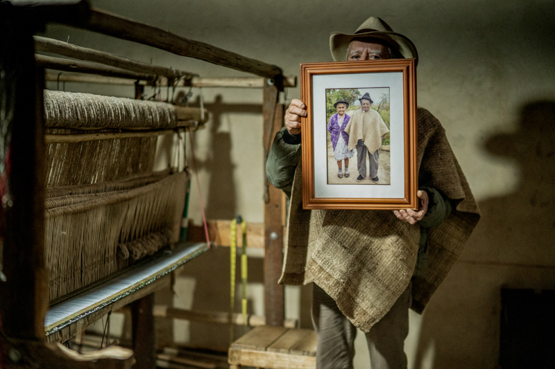 Don Segundo Hernando, oriundo del Mucipio de Sotaquirá en boyacá, es de los pocos hacedores de ruanas tejidas a mano que aún quedan en la zona. Don Segundo, quien curiosamente no le interesaba la tejeduría, aprende el oficio de su padre, quien era un reconocido tejedor de ruanas en la región. Aconteció que el padre de Don Segundo estaba realizando un encargo de una ruana, a mitad de proceso enfermó de gravedad y la ruana quedó a medias. La clienta comenzó a quejarse, así que Don Segundo al ver la preocupacion de su padre por cumplir, le dijo que le enseñara y el terminaba la ruana. Su padre comenzó a enseñarle cómo realizar el trabajo, a hacer su propio telar y a utilizarlo para culminar la ruana que debían entregar. “Esa ruana quedó horrible, la señora se quejó asi que me tocó decirle que mi padre estaba enfermo y que yo la había terminado, la señora se apiadó” dice Don Segundo. Poco tiempo después, su padre falleció dejandole este valioso legado que hasta hoy en día lleva a cabo con orgullo.