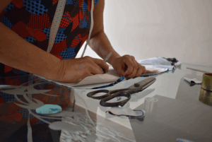 Sueños que toman forma en las manos – (manos cortando y trabajando la tela)