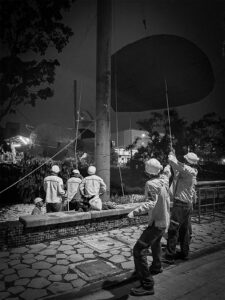Esta serie fotográfica, en blanco y negro, busca honrar a los trabajadores que, a través de una ardua labor en las alturas, hacen posible que la ciudad brille una vez al año, pintando su paisaje urbano con miles de colores. Esta propuesta es un homenaje a su dedicación y un recordatorio de que la belleza de la iluminación decembrina es, ante todo, un acto de trabajo humano.