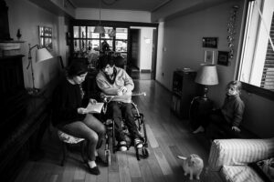 Elvia es una joven estudiante de derecho que asiste y cuida a Juan Cobeñas, un hombre de 34 años con parálisis cerebral que es uno de los principales impulsores del movimiento de vida independiente para las personas con discapacidad en el Argentina Juan está terminando de estudiar Letras en la Universidad de La Plata, ella trabaja ayudándolo para comunicarse y hacer todo lo que necesita en su vida cotidiana incluso para sus estudios él depende de sus lecturas.