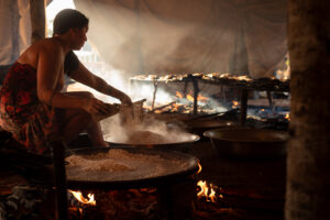 El Kuarup es la ceremonia más potente e importante de la vida espiritual en el Territorio Indígena del Xingu. Realizado en todas las más de 40 aldeas del Alto Xingu, sus rituales fúnebres ponen fin al luto de las familias que han perdido a un miembro en el último año, con fiestas, luchas y actos simbólicos. Pero detrás de todo ello hay un gran esfuerzo colectivo de hombres y mujeres para recibir, alojar y alimentar a decenas de visitantes llegados de aldeas vecinas