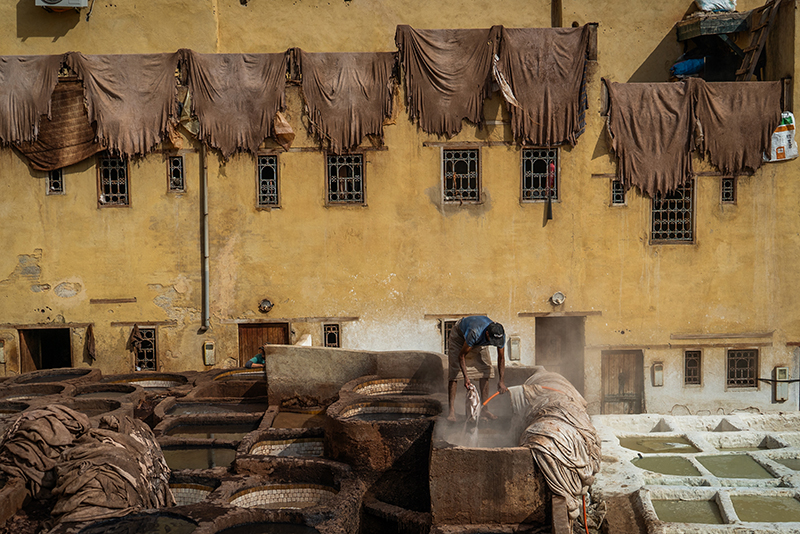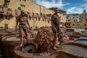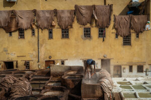 “Toma la hoja de menta”, se ofrece para resistir los fuertes olores de la curtiduría Chouwara, ubicada en la Medina de Fes, donde trabajan pieles de animales con el fin de fabricar productos que se venden en los mercados tradicionales de Marruecos. Curtidores introducen las pieles en enormes cubos de cal y excremento de paloma, las dejan reposar por días. Luego retiran los restos de pelo y proceden a la coloración. Cuando las pieles están coloreadas y secas, los artesanos hacen los productos.