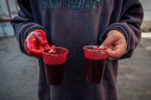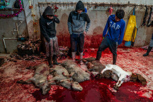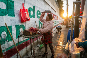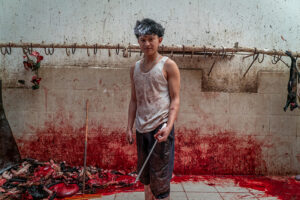 Matanzeros es un trabajo realizado en un rastro de Ciudad Nezahualcoyotl en el Estado de México, donde hombres y mujeres sacrifican todos los días decenas de corderos para su comercialización. Comienza la matanza alrededor de las 2 de la mañana hasta la 11 de la mañana, pare después ser destapados y vender por pieza o completo. Este trabajo llevo realizándolo desde hace 15 años.