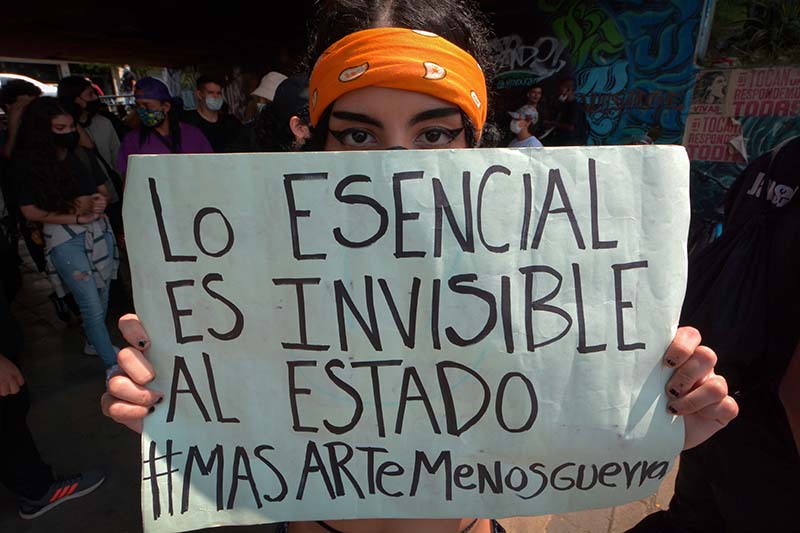 Con la campaña #SinArteNo, cientos de profesionales de las artes y la cultura recorrieron las calles de Cali, Colombia, alzando su voz de protesta, haciendo un llamado al Gobierno Nacional para que declare el estado de vulnerabilidad y emergencia y tome medidas de choque necesarias para rescatar el ecosistema cultural y dejen de relacionarlo con la precariedad, uniéndose al llamado de la UNESCO.