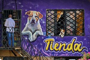 Esta tienda de barrio, está ubicada en Siloé, al sur de Cali, Valle del Cauca, Colombia. Un sector muy golpeado por el conflicto armado y la guerra entre pandillas. Hoy sus residentes, trabajan para recuperar su seguridad y la economía, a través del turismo. Guían a los visitantes por calles llenas de color, historias y ventas de artesanía, que un día fueron escenario de fuertes enfrentamientos y muerte. Y como en cualquier barrio tradicional, no pueden faltar las tiendas de barrio, donde se consiguen alimentos, bebidas y otros productos básicos de primera necesidad, ofreciendo una atención personalizada y una relación de confianza con el tendero, pero además se puede observar la belleza del arte del mural. 2 de julio de 2025.