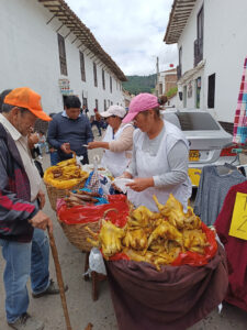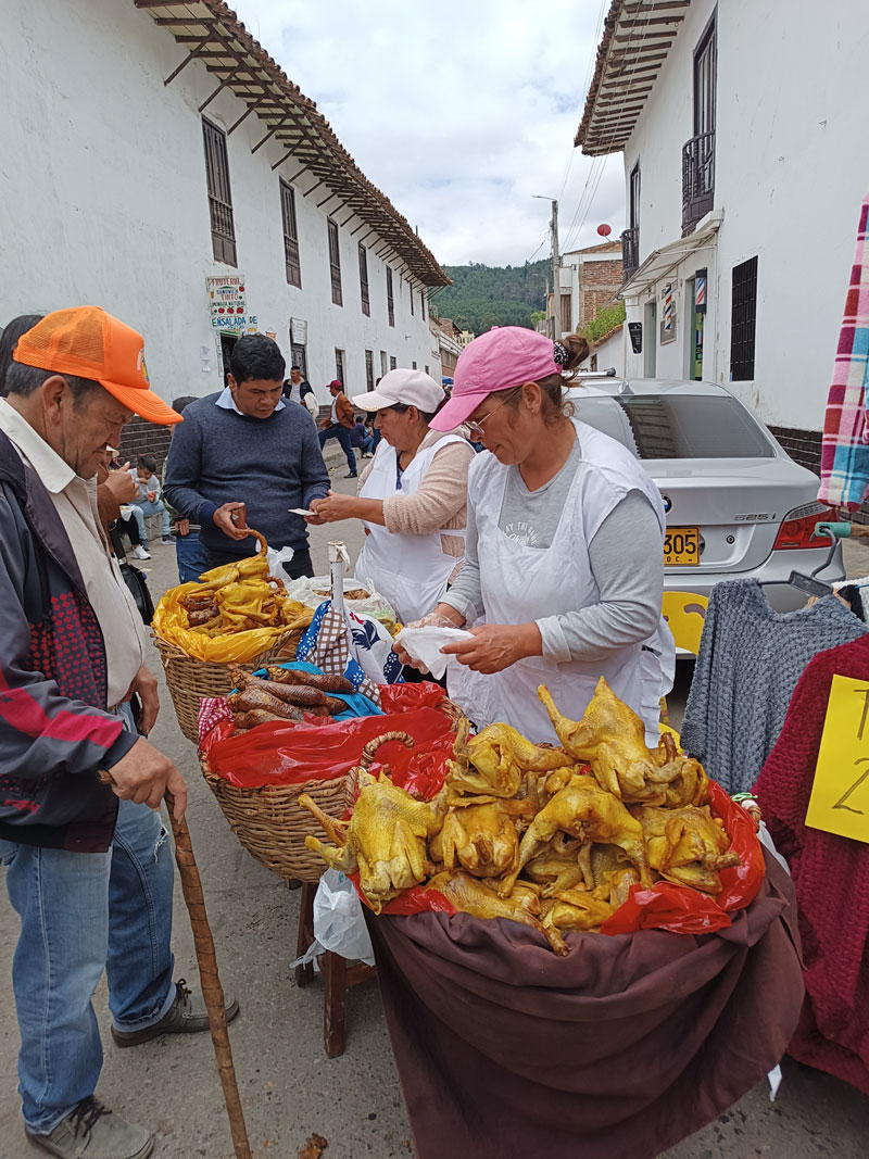 Trabajo informal donde se logra apreciar el trabajo de dos mujeres quienes aprovechan las festividades patronales en honor al señor de la salud del municipio de Santa Rosa de Viterbo, Boyacá el día 14 de septiembre de 2025. En el desarrollo de la actividad las mujeres ofrecen el tradicional pescuezo y la gallina sudada que es comprada por los visitantes promeseros que acuden a la festividad religiosa.