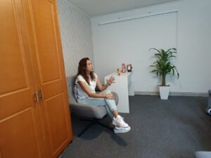 Fotografías capturadas en una sesión de terapia cuyo tema era la movilización hacia “quién soy” y en quién me quiero convertir. Cada imagen representa las distintas etapas de la sesión, desde la conversación de introducción hasta las actividades realizadas por el paciente.