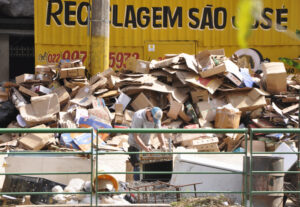 Entre caixas e papéis descartados, surge o retrato silencioso da sobrevivência urbana. No Rio de Janeiro, o trabalho invisível da reciclagem transforma restos em esperança, revelando a dignidade presente em gestos simples. A imagem convida à reflexão sobre consumo, descarte e o valor humano que sustenta a cidade por trás do que chamamos de lixo.