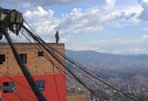 En las parte más alta del barrio Manrique de Medellin, un trabajador de la construcción se detiene por un instante para observar la inmensidad de la ciudad. No solo contempla el paisaje sino cada ladrillo y el pulso de una ciudad que crece gracias a manos como la suya.