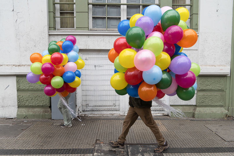 Manifestantes llevan globos en una marcha por el Día Internacional del Trabajador en Santiago, Chile, miércoles 1 de mayo, 2024.