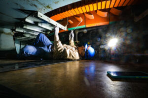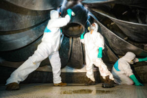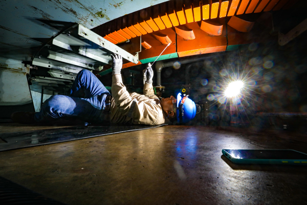 2.- Un ingeniero eléctrico mide el espacio entre el cableado de un rotor el cual conecta con el generador de energía.