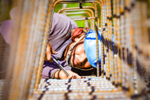 3. En plena altura concentrado en el armado de una de las bases que sostiene el Puente Carolina sobre el embalse de la presa Hidroléctrica 3 de febrero.