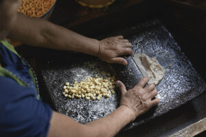 El recorrido del maíz va desde la milpa hasta la mesa. La serie muestra las etapas de un proceso ancestral que sigue vivo en la vida cotidiana: la cosecha, la molienda, el amasado y la cocción. Es un testimonio visual de cómo la tradición alimenta cuerpos y culturas, y de cómo el maíz permanece como raíz esencial de identidad y sustento.
