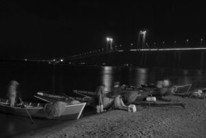 Como bien lo dice el título, son los pescadores que salen por el río Paraná a la noche en sus canoas y por las mañanas venden en las orillas lo pescado en la noche laboral. Sus condiciones son precarias como sus sueldos que dependen solo de la suerte de la noche de pesca.