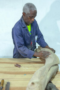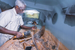 Un tronco destinado a la basura se convierte en revelación en manos del maestro. Primero siente su peso y su textura. Con martillo y gubia comienza a desbastar la corteza liberando la esencia oculta de la materia. Cada golpe retira lo inútil y revela una forma dormida. Lo orgánico le susurra, el maestro se deja guiar, la madera se abre y respira; de lo áspero surge la suavidad, de lo inerte el movimiento, del desecho nace la obra. En silencio, el tronco se transforma en arte, testimonio de que lo olvidado en las manos adecuadas renace en belleza eterna.