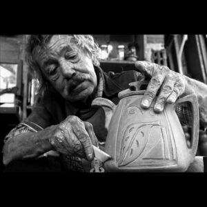 En terrón y fuego habita el ultimo artesano. Desde hace 50 años, sus manos curtidas por el tiempo , dan forma a la tierra y al fuego con una paciencia que parece magia. Entre libros y copas de vino, el anciano guarda secretos que solo el barro entiende: historias silenciosas que se moldean en cada pieza, testigos de una vida dedicada al arte y a la eternidad.